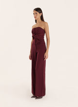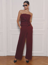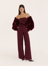 In a structured tailored fabric, the Sawyer trousers take on a flattering wide leg shape. In a rich seasonal burgundy colour, they're the perfect staple for day-to-evening looks. Best worn with the Sawyer top for a party moment, they effortlessly transition to the rest of your seasonal wardrobe.