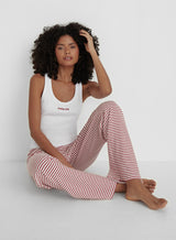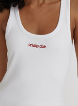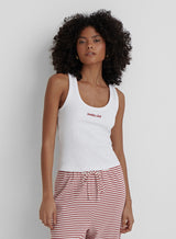 Inspired by relaxing Sunday vibes, our Hazel vest see's a simple silhouette adorned with a soft ribbed fabric and delicagte embroidery detailing. In a classic white hue, this style is uber versatile but we suggest to shop the Mabel trousers to complete your lounge look.