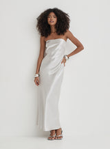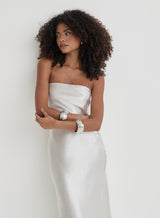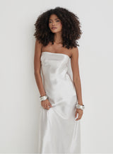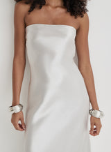 In a striking silver fabric, the Shona dress is your new obession for party season. Cut to a simple slip design with a flattering strapless neckline, this metallic dress creates an instant statement. Pair with heeled boots and understated jewellery.