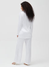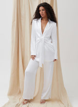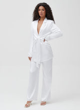 A modern suiting alternative. Featuring a classic tailored design with wide legs to flatter the silhouette, the Elora trouser is finished in a lustrous white satin fabric. An ideal option for special occasions, style with the Elora blazer and heels.