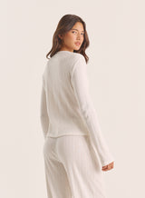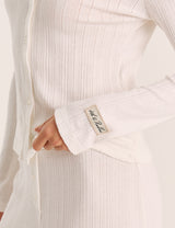 Your new signature piece for winter styling, introducing the Zoella top, crafted from intricate pointelle fabric. This long-sleeve style features button fastenings and a rounded neckline, complete with a subtle branded badge detail. Opt for a co-ordinated look with the Zoella trousers and your favourite cosy slippers.