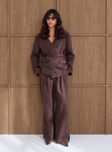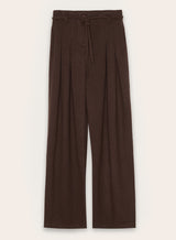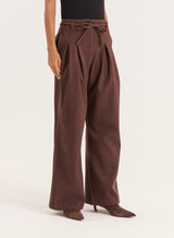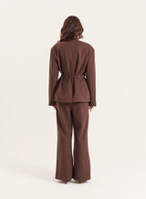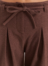 Chocolate Herringbone Tie Belt Wide Leg Trousers