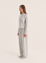A staple for winter travel plans or quiet days at home, meet the Danikka wide leg trousers in a statement grey stripe. Crafted from a soft ribbed material, they're endlessly practical without compromising on style, featuring a drawstring waistband and mid rise fit. Co-ordinate with the Danikka top and cosy accessories.