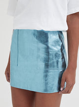 A futuristic party piece, the Kiki skirt is characterised by its lustrous metallic finish in an electrifying blue hue. A bold and attention-grabbing piece falling to a mini length, it’s perfect for your next night out simply add a tee and heels.