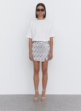 One for your after-dark edit, crafted in a buttery faux leather and finished with hardware embellishments, the Daphne skirt is a standout piece. Finished with a subtle split, style with a white tee and silver heels for a put together going out look.