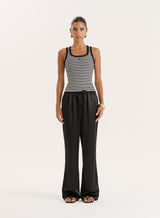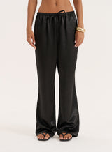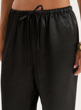 Taking you from summer styling to trans-seasonal dressing, the Shelby satin trousers are a true wardrobe staple. In a soft satin fabric, they come in a relaxed straight leg shape with a drawstring elasticated waist for added comfort. The staple black hue makes them super versatile - style them with an everyday vest in summer or a soft knit for cooler days.