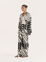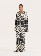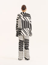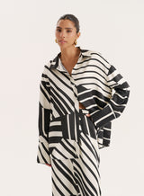 An effortless option, add the Amira shirt to your everyday collection of comfortable and elevated pieces. The button front design comes in a soft satin fabric in an abstract black and white stripe print. Finished to a relaxed fit with long sleeves, simply style with the matching Amira trousers for an elevated everyday look.