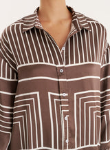 Chocolate Abstract Print Satin Shirt- Amira
