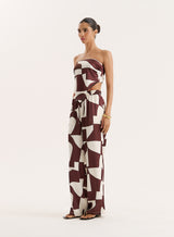 Chocolate Abstract Print Satin Bandeau Top- Bradie