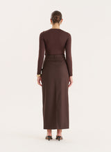 In a rich chocolate brown hue that effortlessly transitions to the new season, the Cora going out top takes a simple fitted design and elevates it with a layered ruching across the bust. In a stretchy, jersey fabric that's super comfortable, it features a rounded neckline and long sleeves for a truly easy wear. Pair with your go-to jeans or tailored trousers for an evening look.