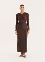 Chocolate Bust Detail Long Sleeve Top- Cora