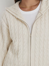 Feel cosy all season in the Janina knitted hoodie. In a versatile cream hue, it's designed in a timeless cable knit finish with simple zip up fastening and a drawstring hood for a practical feel. Wear with the matching knitted trousers for a head-to-toe look or layer with your wardrobe basics.