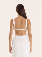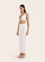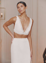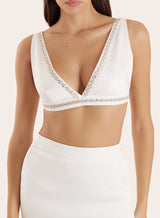 A timeless piece for statement dressing, the Lucia bralet is finished with embellishments that sparkle from afar. Crafted in a crisp white satin fabric, this tailored design is cut in a V-neckline for an ultra-flattering silhouette. For an party season look that won't let you down, style with the matching Lucia skirt and heels.