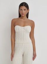 Boasting a soft cream hue, the Janina corset is perfectly tonal and will elevate your AW wardrobe. Featuring a corset silhouette, this style see's a figure hugging shape with bust cups and plaited detailing. The utlimate hybrid of comfort and style, style with the matching Janina trousers.