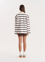 The rugby top of the season has arrived. Designed with your morning coffee run in mind, the Hailey rugby top has a horizontal stripe design in a dreamy cream and brown colour palette. Offset with a contrast white collar, it features long sleeves and the 4th embroidered logo at the chest. In a relaxed, oversized fit, it's made from a cotton-blend fabric for a super soft feel. Wear with cycling shorts to take you from coffee pick-ups to weekend strolls.