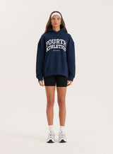 For those who are living in athleisure, welcome the Bobby hoodie to your collection. Where sporty style meets effortless cool, it's crafted from soft cotton in a deep navy hue with the bold 'Fourth Athletics' logo detail across the chest. Designed with a classic oversized fit and cuffed hems for ultimate comfort and understated style, just pair with joggers or leggings for the full fit.