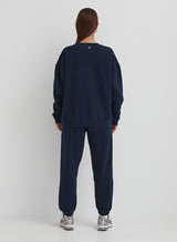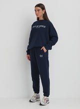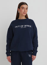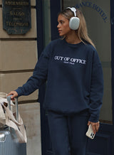 Combining comfort with style, the oversized Peyton sweatshirt is the perfect staple for the transitional period. The white embroidered ‘out of office’ slogan contrasts perfectly with the solid navy base, creating a minimal piece that is effortlessly cool. Pair with the Peyton joggers for the full OOO look or style with the Elessia leggings for a simple fit.