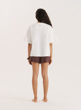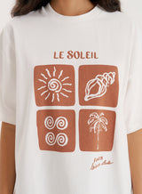 For casual summer moments, reach for the Ria oversized t-shirt. Crafted from a pure cotton fabric, it features a relaxed fit with dropped shoulders, short sleeves and a crew neckline. In a neutral off-white hue, it's finished with a rust 'Le Soleil' graphic print across the chest and 'Fourth leisure club' branding. Wear with striped beach shorts for an everyday holiday look.
