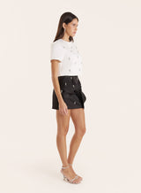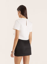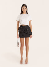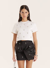 A sleek eveningwear staple, the Annie top features embellished detailing that offers timeless appeal. This boxy silhouette is cut to a cropped length, giving a contemporary edge on a classic piece. Finished with short sleeves and a rounded neckline, it's designed for styling with ease.
